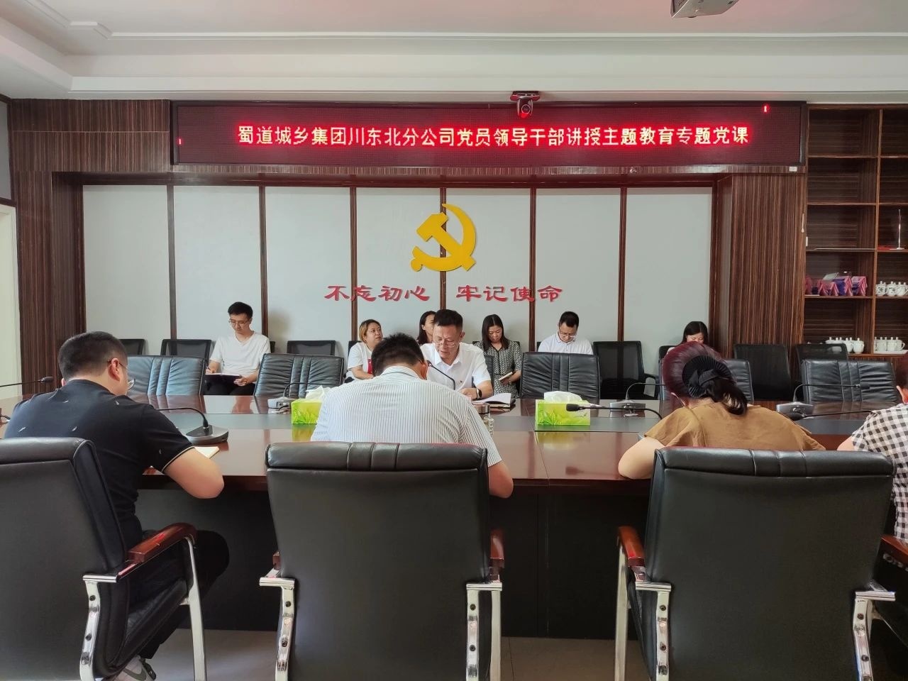为扎实推进学习贯彻习近平新时代中国特色社会主义思想主题教育走深走实,7月18日,蜀道城乡集团川东北分公司党委副书记、总经理张健结合主题教育要求和工作实际以《感悟思想伟力 凝聚奋进力量》为题为达州“莲花府邸”项目全体员工讲授了一堂生动形象的专题党课。